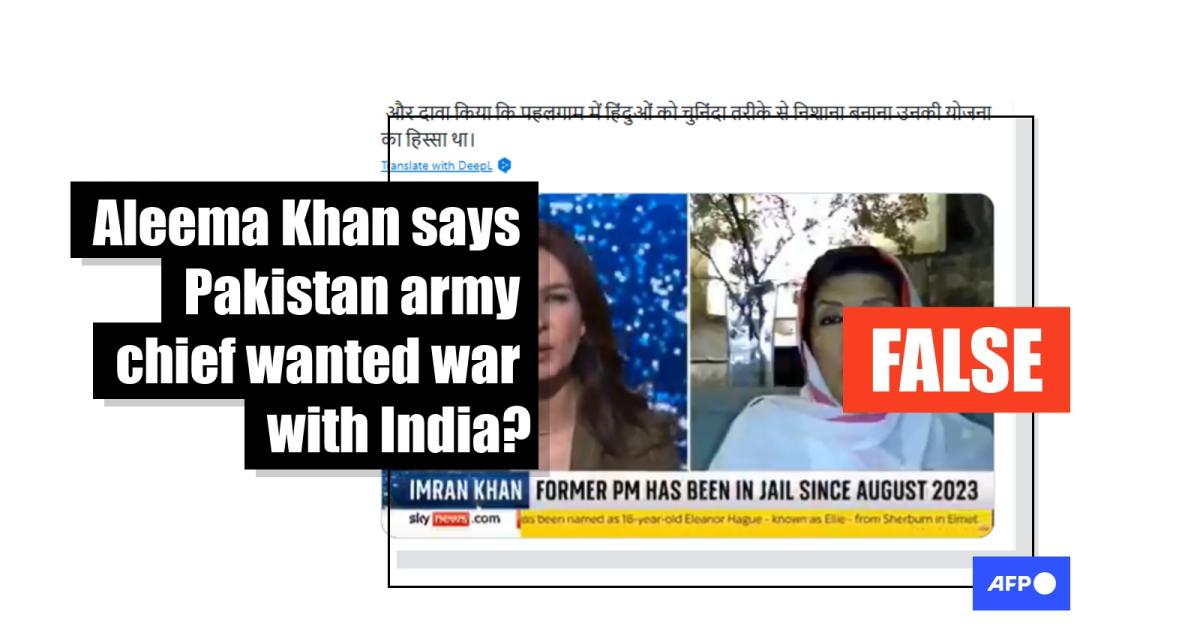 "In an interview with Sky News, Aleema Khan, sister of ex-PM Imran Khan, alleged Army Chief Asim Munir engineered the May conflict with India to bolster his Islamic identity, and claimed the selective targeting of Hindus in Pahalgam was part of his plan", reads a Hindi-language X post shared on December 3, 2025.
