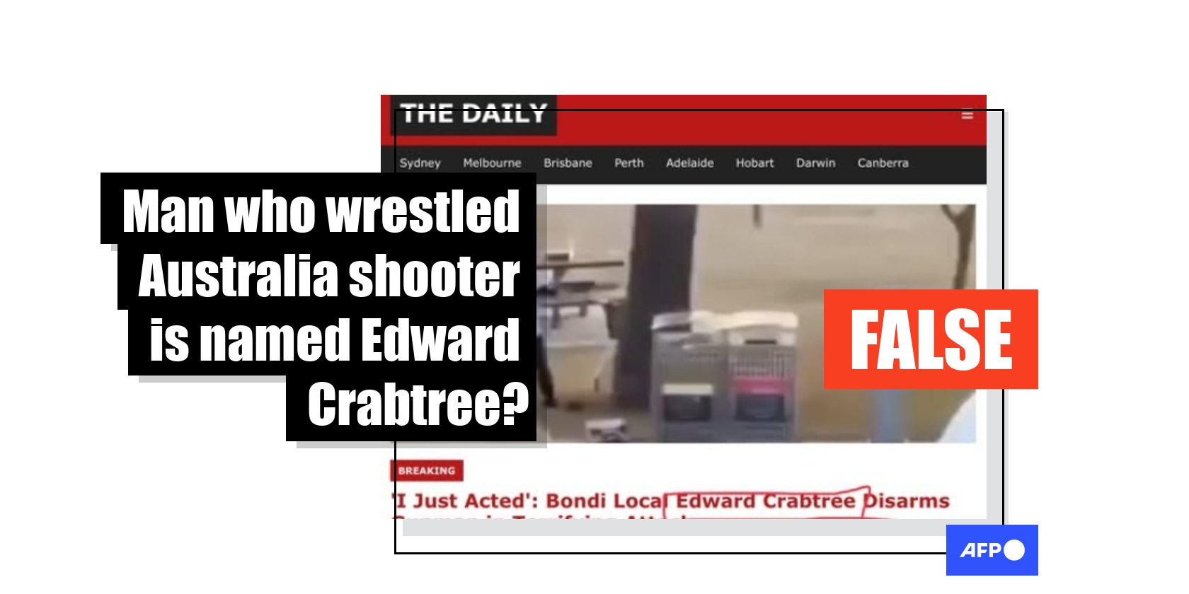 Australians have lauded a man who was filmed wrestling a gun from an attacker during the country's worst mass shooting in years. Local media identified him as Ahmed al Ahmed, but baseless posts that spread widely on social media insisted his name was Edward Crabtree. The false claim originated on a sham news website that was only registered on the day of the attack that killed 15 people.