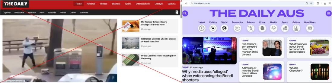 A search on the public Whois database, which shows contact information for those who own websites, found it was registered on December 14 -- the day of the Bondi Beach attack (archived link).