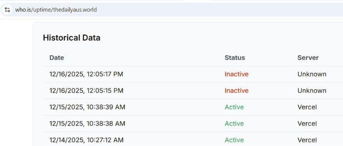 The site's URL appears to mimic Australian media The Daily Aus but its homepage does not bear any resemblance to the latter.