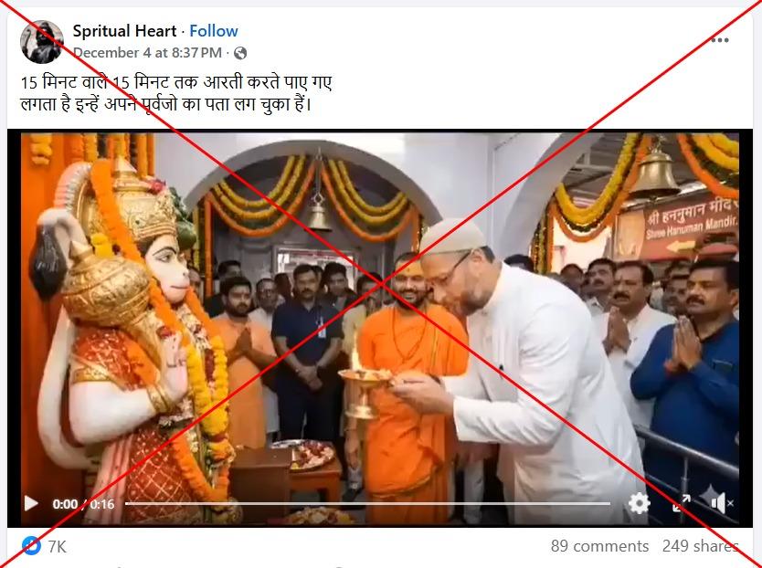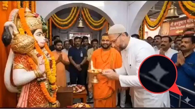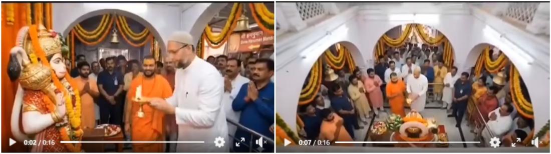 The attached 16-second video appears to show Owaisi, surrounded by a crowd, performing religious rituals in front of a Hindu idol.