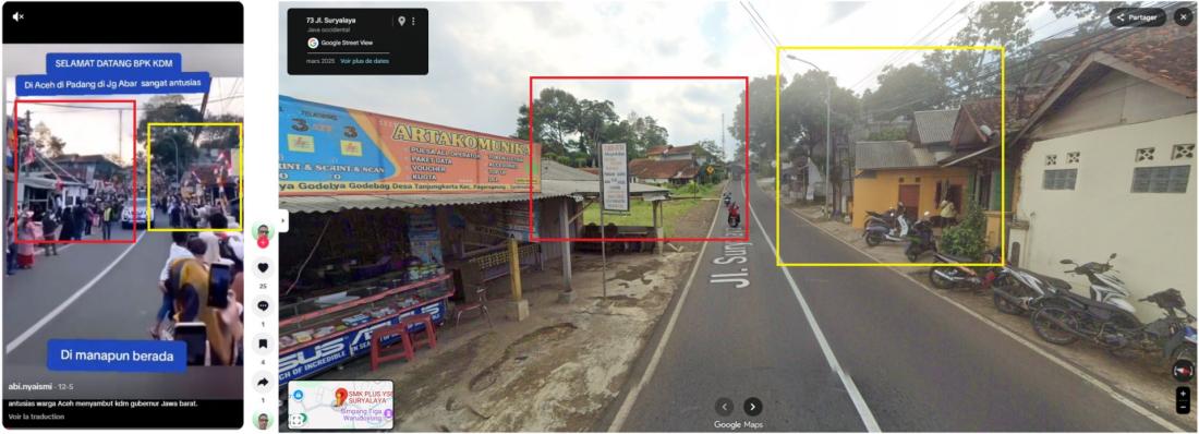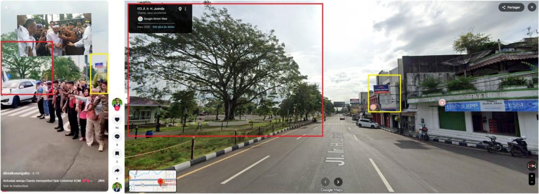 Images on Google Maps Street View show the crowd in the clip was outside the school, which is over 1,500 kilometres (1,113 miles) away from Aceh, where Dedi visited (archived link).