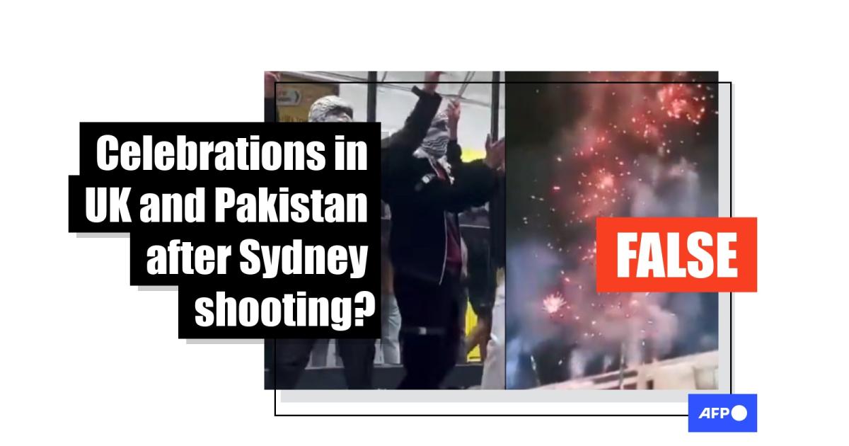 After gunmen fired on a crowd celebrating the Jewish festival of Hanukkah at Sydney's Bondi Beach on December 14, 2025, videos spread in social media posts falsely claiming they showed people in the United Kingdom and Pakistan celebrating the deadly attack. The videos predate the shooting and depict a pro-Palestinian demonstration in Manchester in June and a fireworks display in Karachi organised after Hamas's attack on Israel.