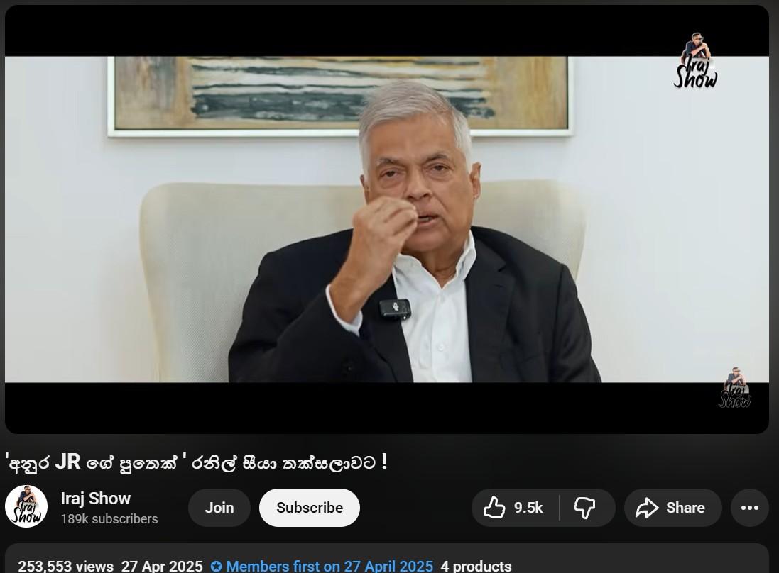 The post includes a 24-second clip showing former president Ranil Wickremesinghe speaking at what appears to be an interview.
