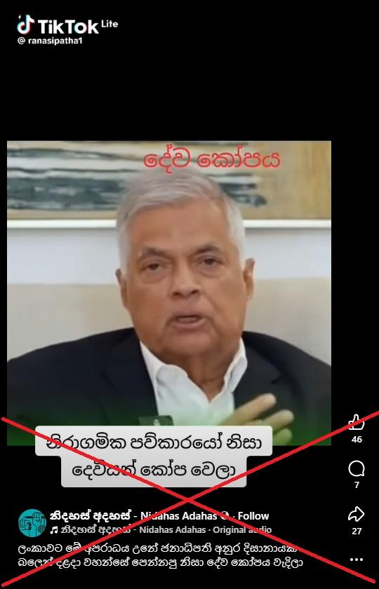 But the video was taken from a podcast published in April 2025, where Wickremesinghe was actually criticising the government for mismanaging the display of the Sacred Tooth Relic.