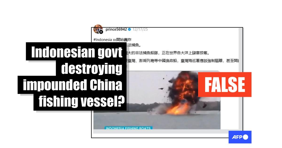 The Indonesian government had previously sunk impounded foreign boats to deter illegal fishing in its waters, but the nation's marine affairs ministry in 2024 said the policy had been changed. Rumours online claimed a Chinese vessel was recently blown up, but the posts feature old footage from reports about the demolition of boats from multiple countries, none of which were identified as Chinese.