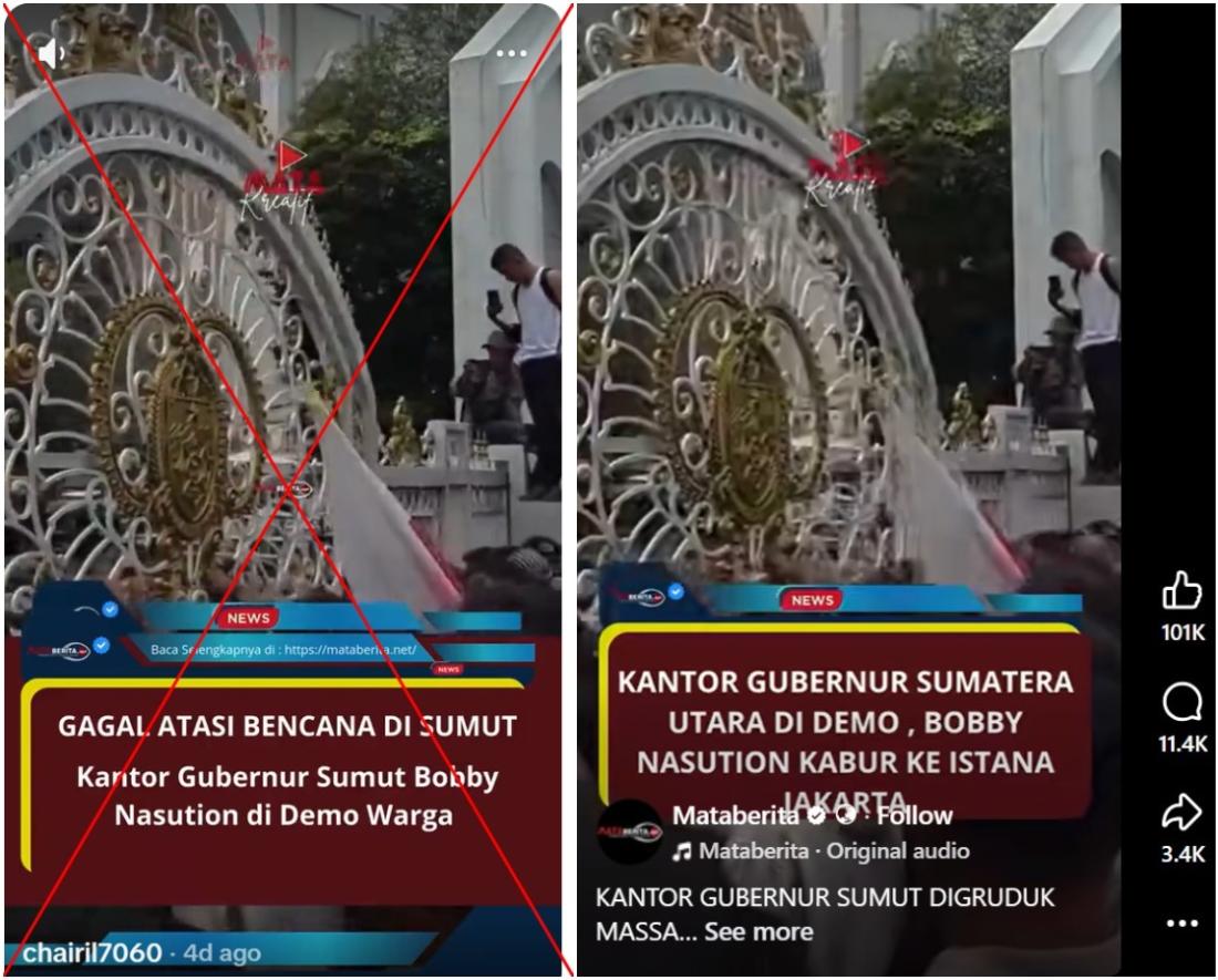 "While protesters gathered at the North Sumatra governor's office, Bobby Nasution fled to the presidential palace in Jakarta," read its overlaid text.