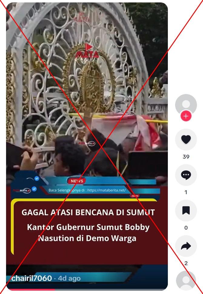 "Failed to address flooding in North Sumatra. Residents protested at Governor Bobby Nasution's office," reads Indonesian-language text superimposed on a TikTok video shared on December 14, 2025.