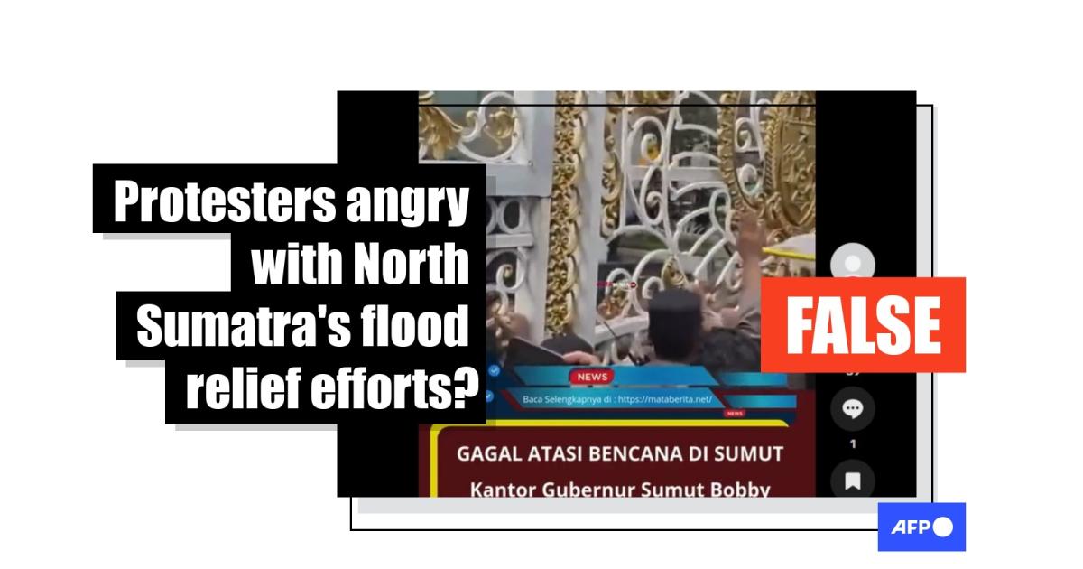 As Indonesian civil society groups demanded a swifter response and greater mobilisation of national resources to help those affected by devastating floods and landslides on the island of Sumatra, a month-old video was shared in posts falsely claiming it showed protesters angry that the government had "failed to address flooding". The video in fact shows villagers calling on the local government to shut down a pulp company that they said was causing ecological damage.