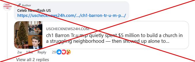 Another Facebook post tells a nearly identical story, but claims the charitable act traces to Trump's son, Barron. It encourages users to read the "full story" linked in the comment section.