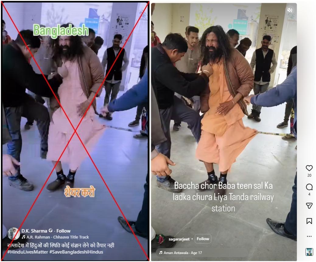 Further keyword search found another video of the same incident shared on the Instagram account of a local media outlet on December 16, 2025 with a caption, "People at Punjab's Tanda railway station were seen assaulting an old man who was accused of trying to abduct a child." (archived link)