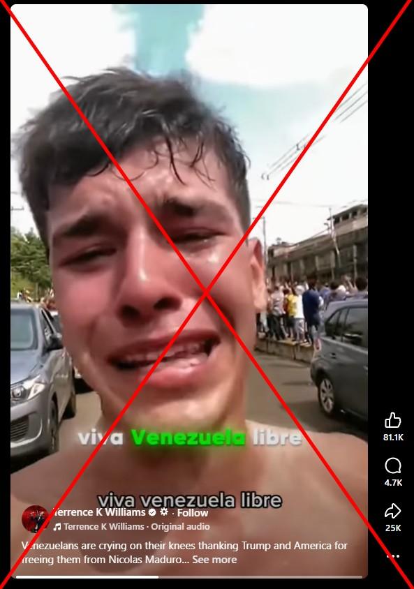 "Venezuelans are crying on their knees thanking Trump and America for freeing them from Nicolas Maduro," reads the caption of a January 3, 2026 video posted on X by Wall Street Apes, known for repeatedly spreading misinformation.