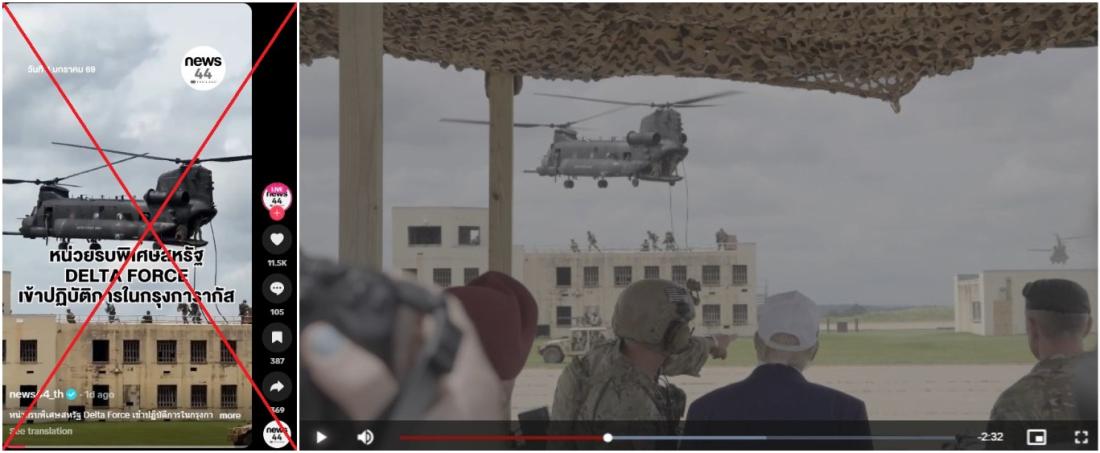 After US forces captured Nicolas Maduro on January 3, 2026, social media users circulated a video of an old military exercise and falsely claimed it showed the operation against the ousted Venezuelan leader in Caracas. The clip depicts a US Army exercise attended by President Donald Trump in North Carolina.