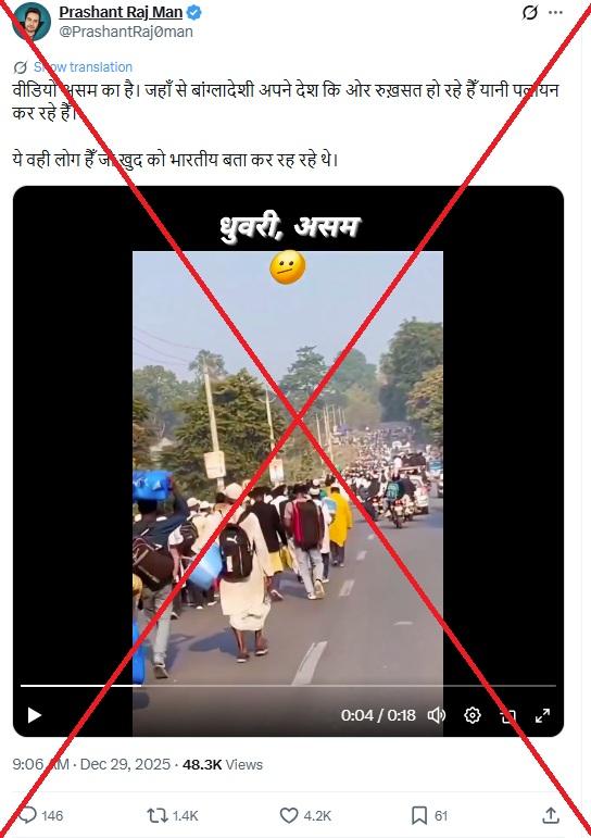 "The video is from Assam, where Bangladeshis are leaving for their homeland, meaning they are migrating," reads part of the Hindi-language X post shared on December 29, 2025.