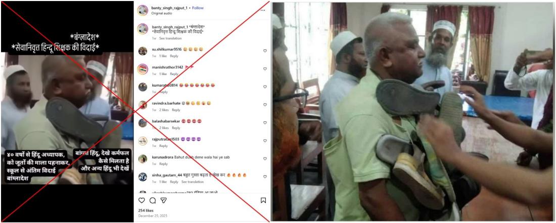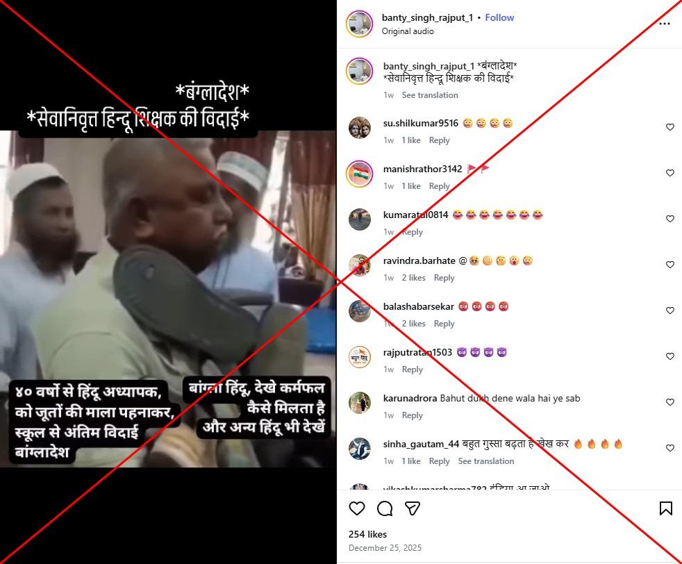 "Bangladesh: farewell ceremony for a retiring Hindu teacher," reads a Hindi-language Instagram post on December 25, 2025.