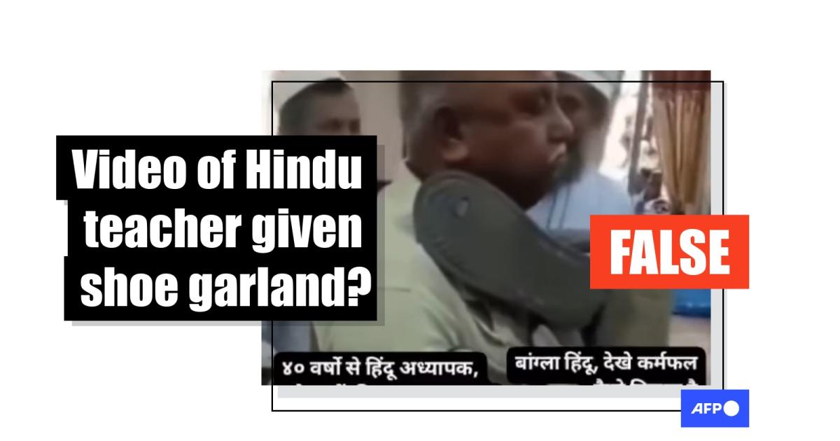 Text on the video claims it showed a 50-year-old Hindu teacher garlanded with shoes in Bangladesh.