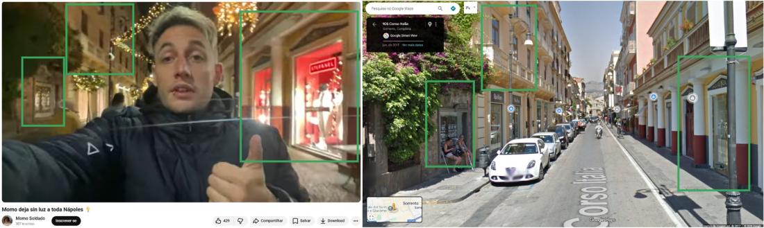 Using Google Street View, the same storefronts -- including clothing shops and an ice cream parlor seen behind Benavides -- place the video on Corso Italia, a main street in the heart of Sorrento, on the outskirts of Naples (archived here and here).