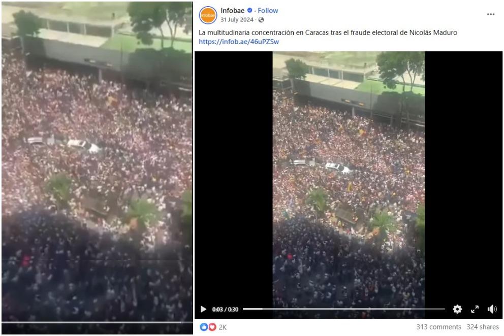 The Infobae video was shared on its verified Facebook page on July 31, 2024, alongside a caption that states it shows a large protest in Caracas after Maduro's "electoral fraud".