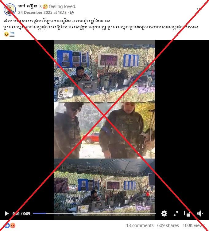 "Foreigners came to help Siam secretly -- no wonder Siam is so strong," reads a Khmer-language Facebook post shared on December 24, 2025, using a historic name for Thailand.