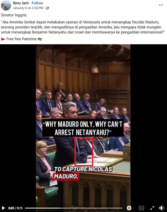 "If the United States can conduct an operation in Venezuela to capture Nicolas Maduro, an elected president, and put him on trial in American courts, then why is it impossible to capture Benjamin Netanyahu from Israel and bring him before (an) international court?" a man says in a Facebook video shared on January 6, 2026.