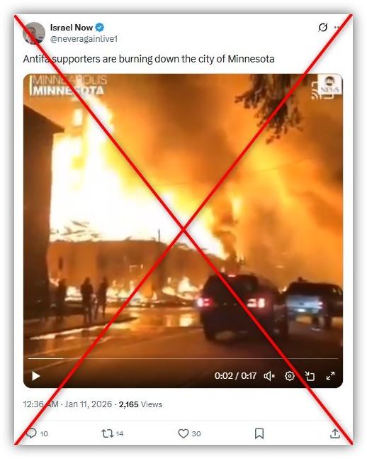 "Antifa supporters are burning down the city of Minnesota " says a January 11, 2026 post on X.