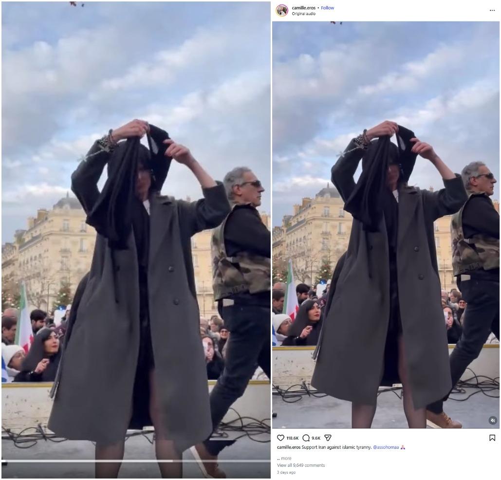 A reverse image search on Google using keyframes from the video of the woman removing her headscarf found the clip was posted on the verified Instagram account of a user based in France on January 11 (archived link).