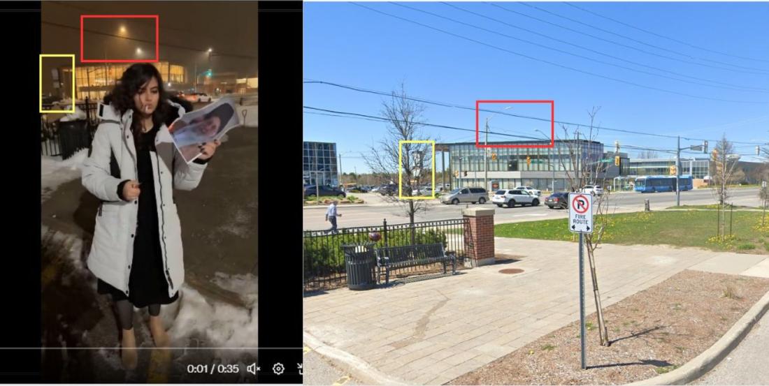 Elements of the video also match Google Street View imagery of the protest site (archived link).