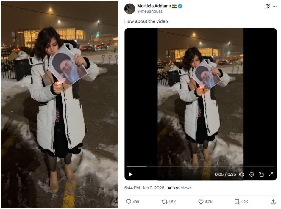 Another video shared in an X post on January 10 shows a woman burning an image of Iran's supreme leader Ayatollah Ali Khamenei.