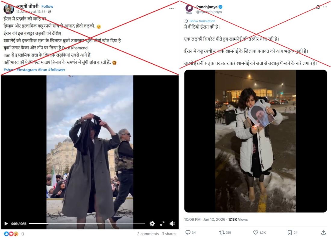 Videos filmed in France and Canada misrepresented as showing protesters in Iran