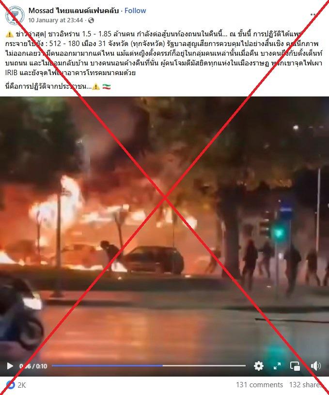 "Latest news: About 1.5-1.85 million Iranians are fighting on the streets tonight," reads part of the Thai-language post. "At this stage, the revolution has spread to 180 cities in 31 provinces."