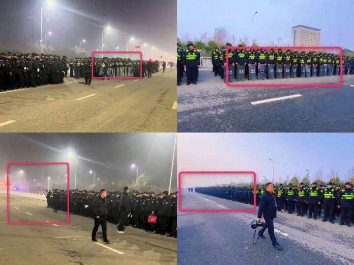 The simplified Chinese captions of the videos noted that the uniformed people were security personnel for an all-star concert held at Zhonghe Global Centre in Runan County, Henan Province, China.