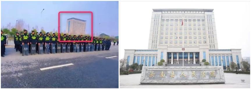The building visible in some of those videos resembles the Runan County People's Court, which is located opposite the concert venue according to Gaode Map, a widely used mapping service in China (archived link).