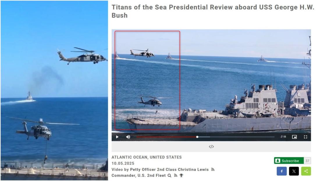 A subsequent keyword search found similar footage was published on the DVIDS website on October 5, 2025 (archived link).