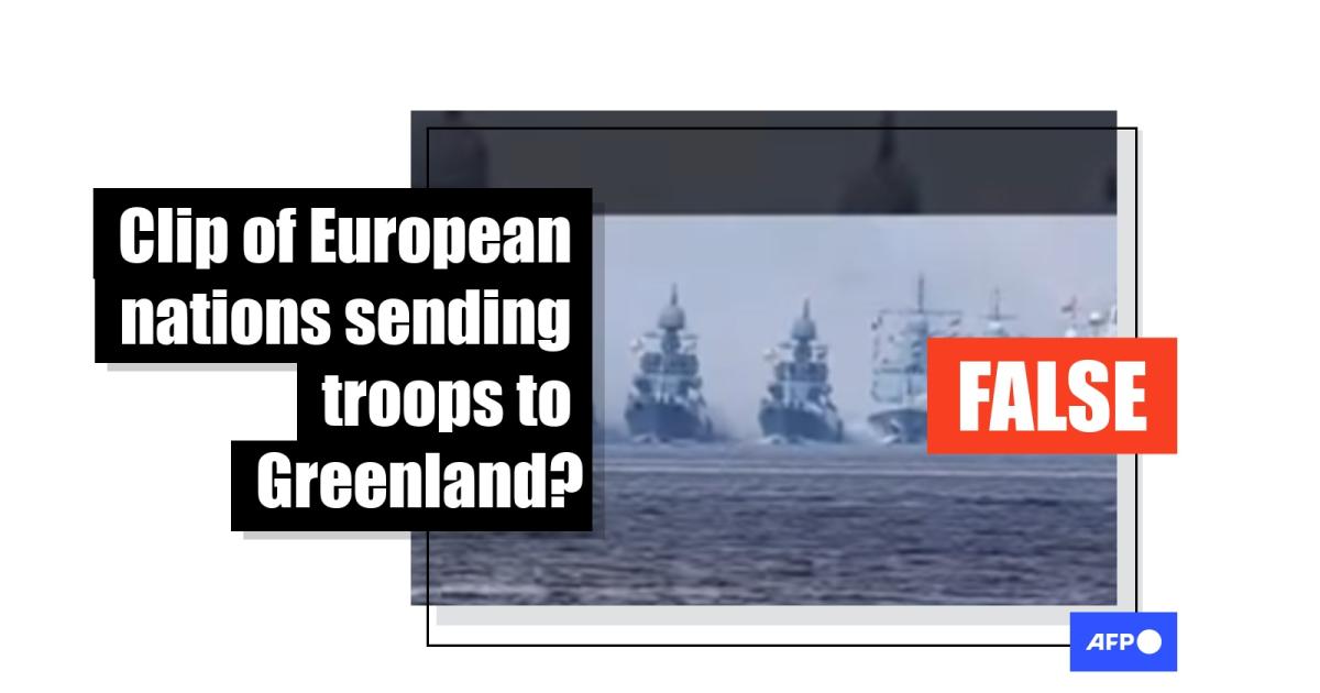 Several European countries announced in January 2026 they will send troops to Greenland in response to US President Donald Trump's push to take over the autonomous Danish territory, but a video circulating online that shows a formation of warships is not linked to the deployment. The clip appears to have been made from a photo of a 2019 Russian naval parade and contains visual inconsistencies that are indicative of synthetically generated clips.