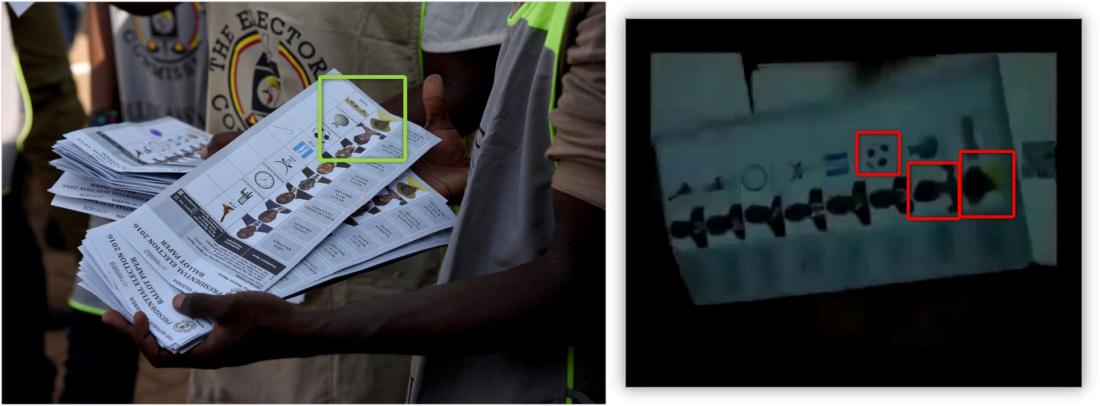 Additionally, the positions of the soccer ball for the independent candidate, Mabirizi Joseph, and the vase for the independent candidate, Maureen Kyalya Waluube, are a match.