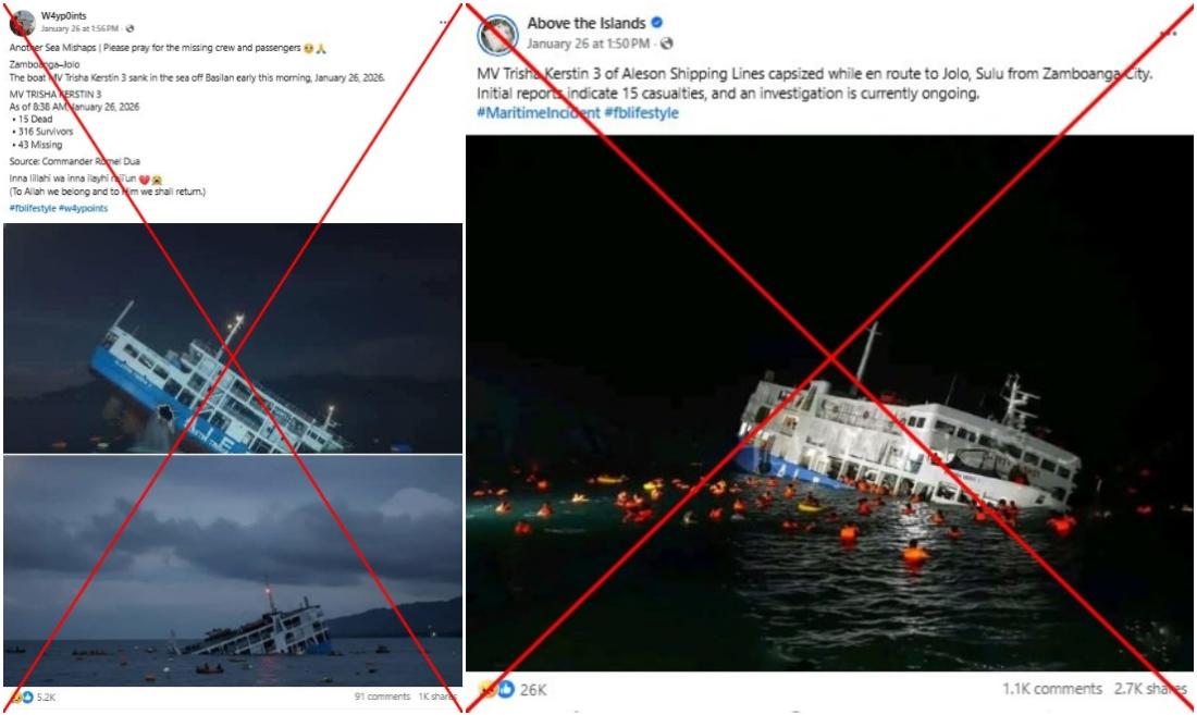 "Another Sea Mishaps (sic) | Please pray for the missing crew and passengers," reads a Facebook post with more than 1,000 shares. "The boat MV Trisha Kerstin 3 sank in the sea off Basilan early this morning."