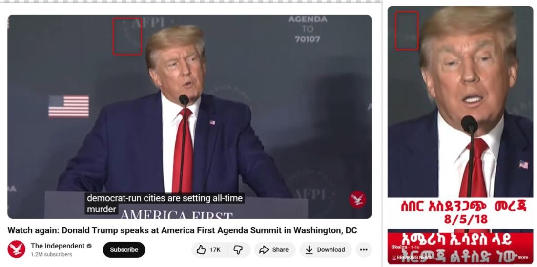 The “AFPI” logo is visible behind him in the unedited footage, but obscured in the altered video.