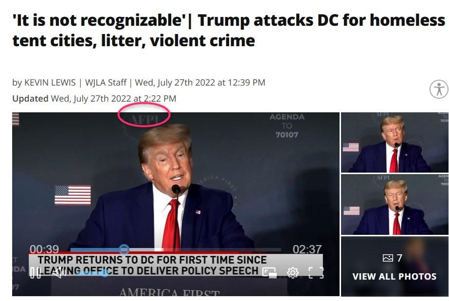 The WJLA report covered Trump’s criticism of homelessness and rising crime in the US capital, which he described as signs of national decline.