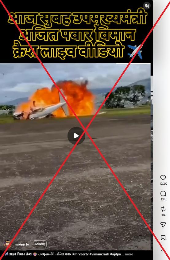 The video also surfaced in similar Instagram and X posts, but it does not show Pawar's plane crash.