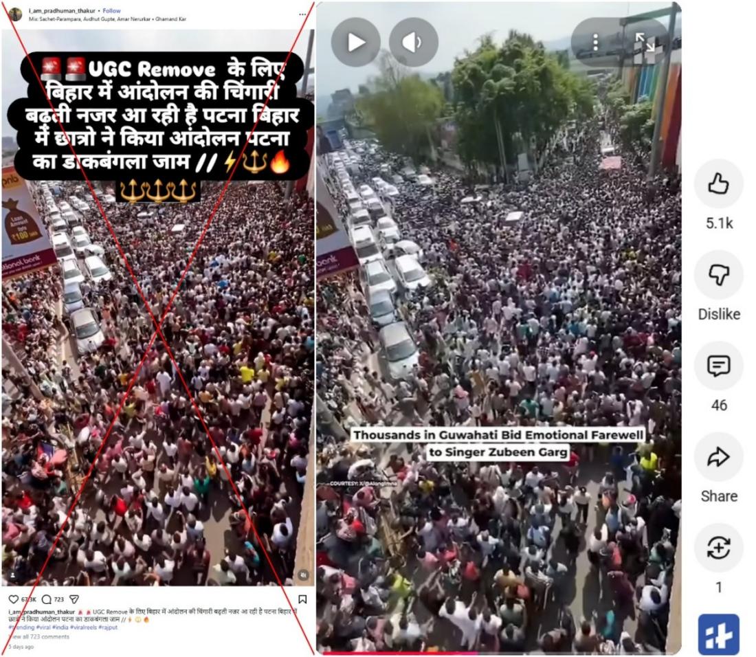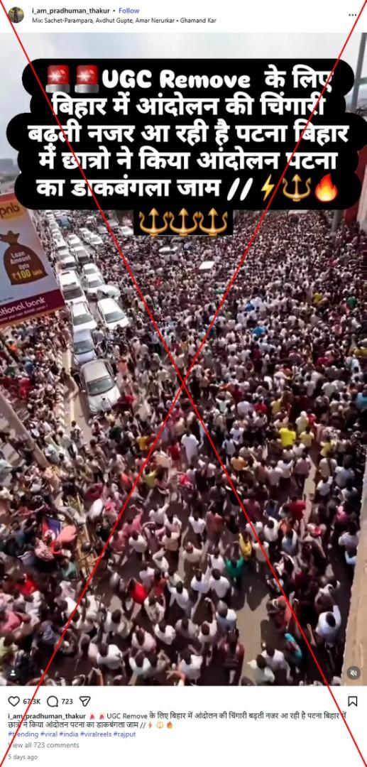 "The spark of agitation against UGC rules seems to be growing in Bihar. Students protested in Patna, Bihar and blocked the Dak Bungalow of Patna," reads the Hindi-language caption of an Instagram video shared on January 28, 2026.