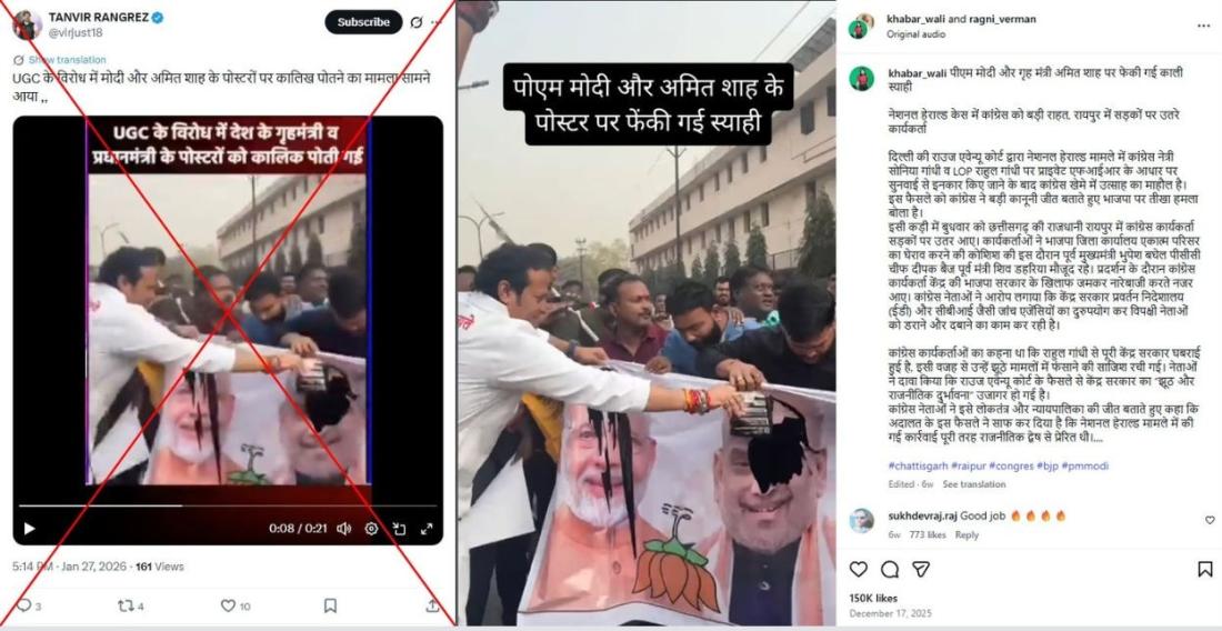 Another video shared in a similar X post from January 27 shows ink being thrown over images of Prime Minister Narendra Modi and Home Minister Amit Shah, apparently in protest against the UGC rules.