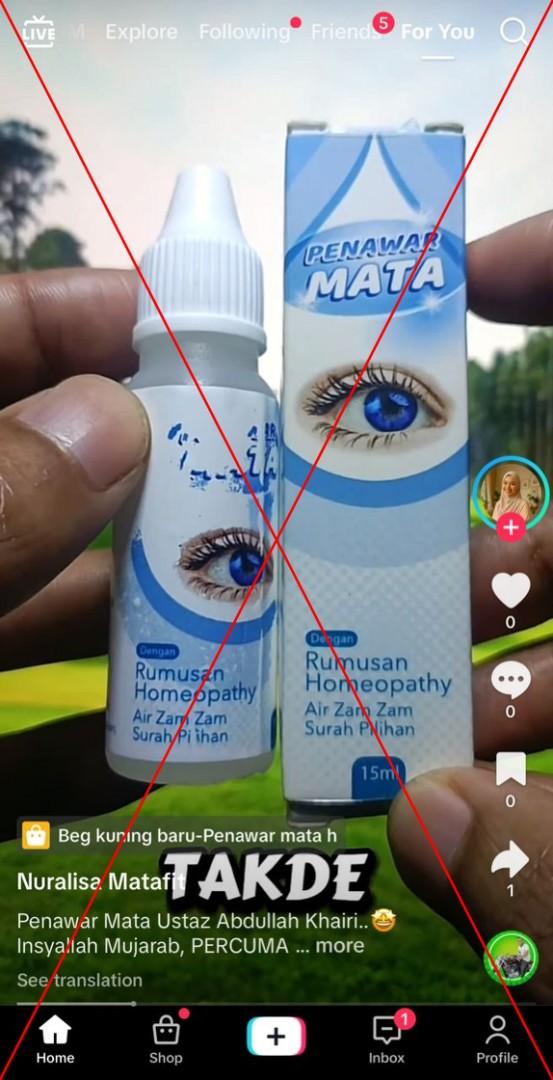 Similar posts claiming the product can help cure serious eye conditions including astigmatism, cataract and pterygium have circulated since 2024 and continue to surface in 2026 on TikTok as well as Facebook.