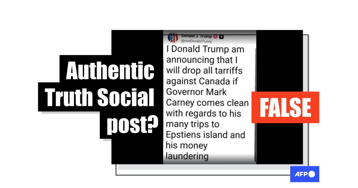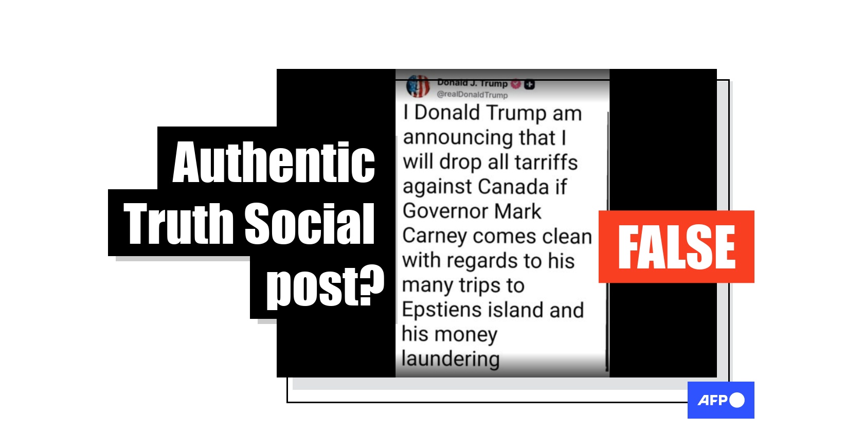 Trade tensions between the United States and Canada have flared since Donald Trump's return to the White House, and the US president regularly uses his Truth Social platform to make tariff threats against his northern neighbor. But a purported Truth post, allegedly showing Trump promising to end the economic war in exchange for Prime Minister Mark Carney's admission to involvement with convicted sex offender Jeffrey Epstein, is fake.