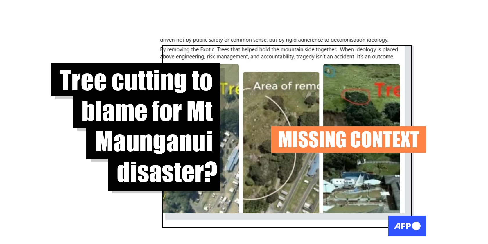 Authorities are probing the cause of a deadly landslide in northern New Zealand in late January, but experts have pushed back against claims online that the removal of trees by the city council and local iwi leaders -- Maori tribe -- was solely to blame. Eight trees were cleared from Mount Maunganui in 2023 but records from the time show they were destroyed by a cyclone or were deteriorating. Geologists told AFP multiple factors likely triggered the recent disaster and urged the public to wait for the results of the full investigation.