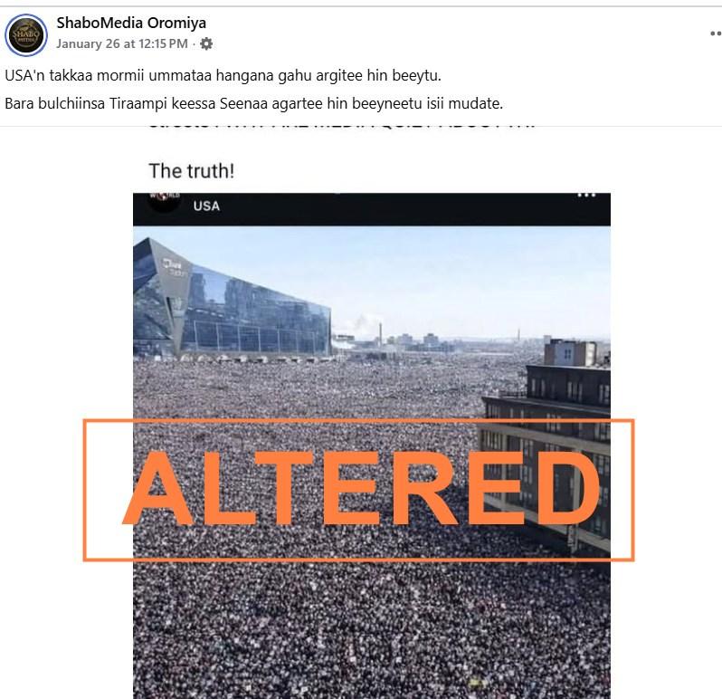 A Facebook post in Afaan Oromoo, one of Ethiopia’s major languages, translates to: “USA has never before seen such an unprecedented number of people protesting,” adding that “a new history has been made during Trump’s regime.”