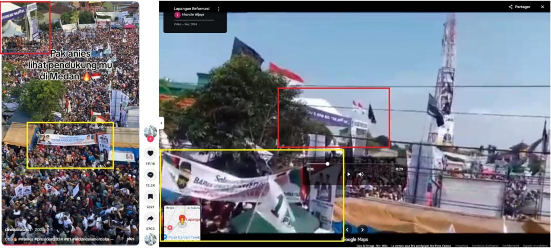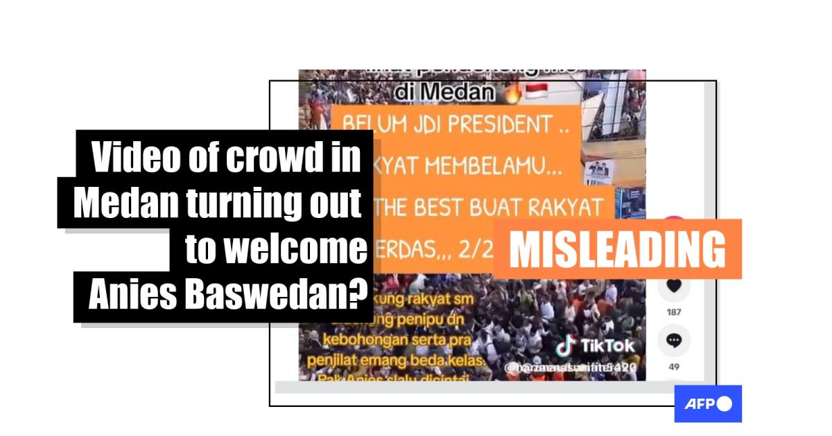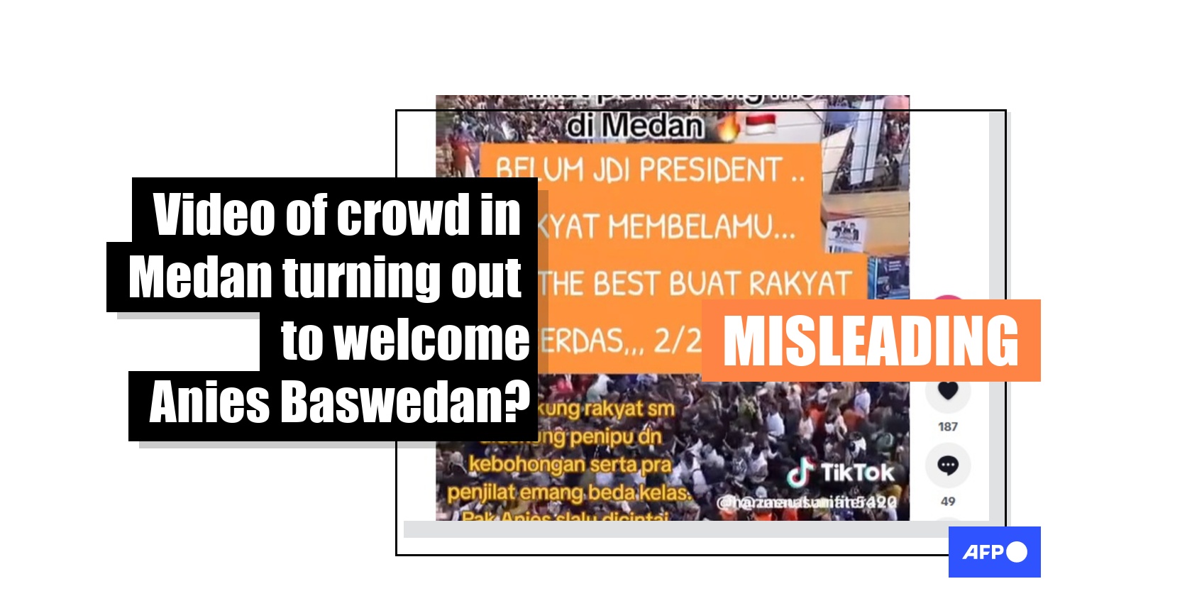 "Mr Anies, look at your supporters in Medan," reads part of the video's superimposed Indonesian-language text. Medan is the capital of Indonesia's North Sumatra province.