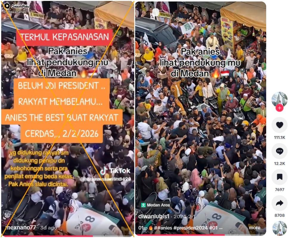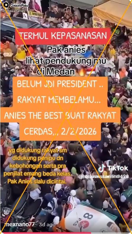 But the video circulating on social media does not show Anies visiting Medan in February 2026, as the posts suggest.