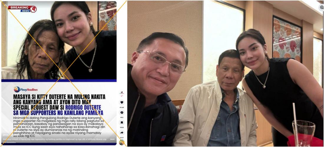 "Kitty Duterte is happy to see her father, Rodrigo Duterte, who has a special request to their family's supporters," reads part of the overlaid Tagalog-language text on what appears to be a news graphic shared on TikTok on January 21, 2026.