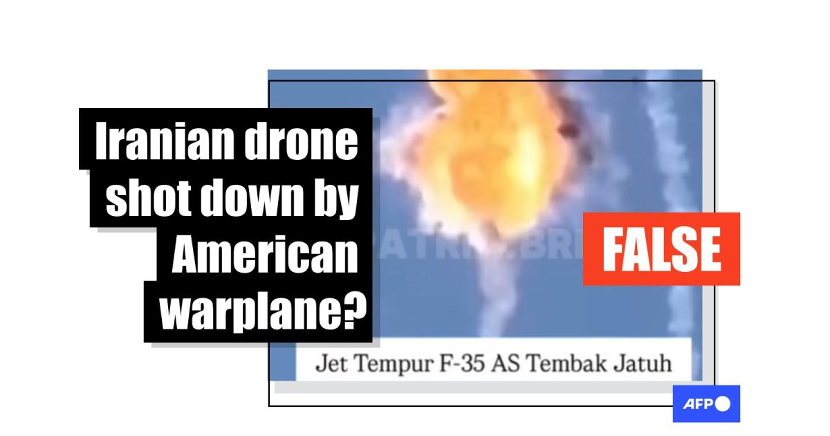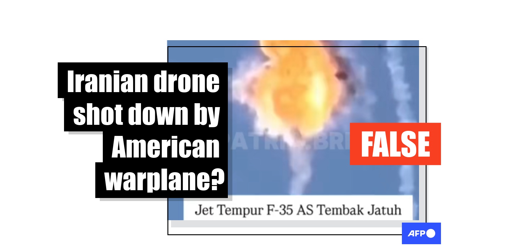 After a US warplane destroyed an Iranian drone that flew near to an American aircraft carrier, a video was shared in posts falsely claiming it showed the shoot down in the Arabian Sea. The video had in fact circulated eight months earlier in posts about an Iranian drone that was downed by Israel's Iron Dome air defence system.