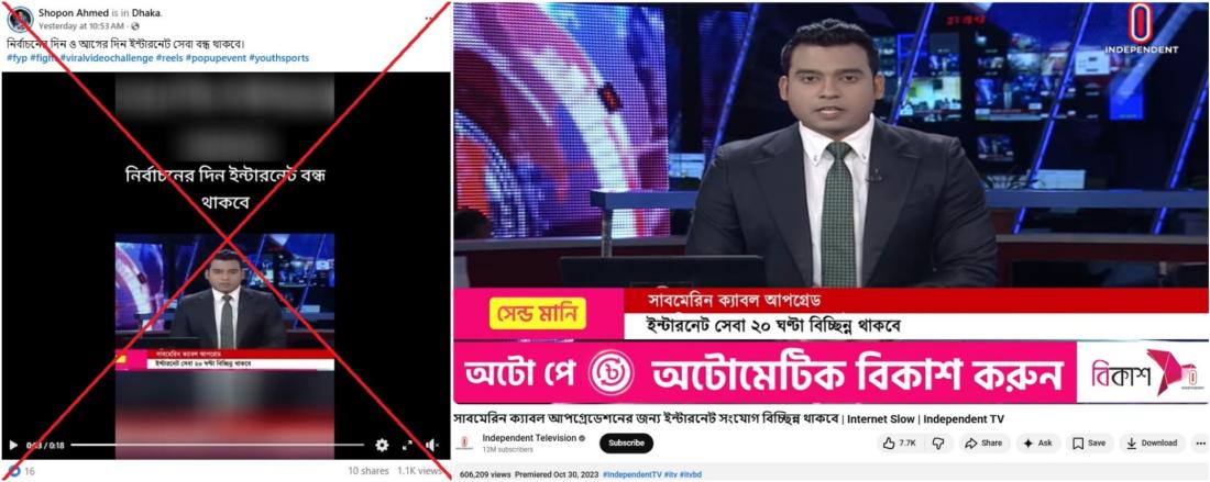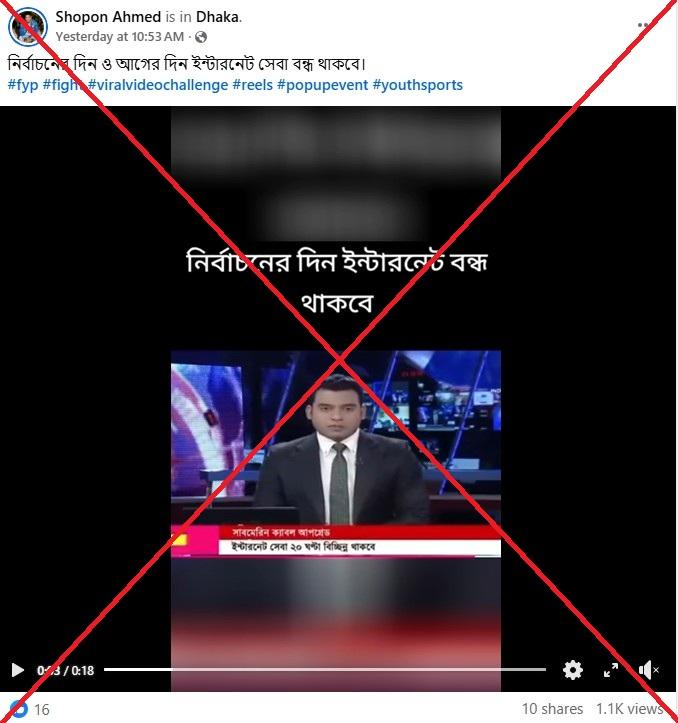 "Internet services will be shut down on election day and the day before," reads a Bengali-language Facebook post shared February 10, 2026.